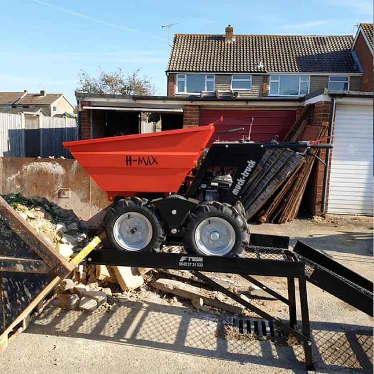 The Muck-Truck® H-Max is an engine-powered machine with Hydraulic Tipping, making it much easier to empty the skip.